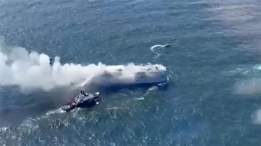 An electric car is believed to have caused a blaze aboard a cargo ship that was carrying almost 3,000 vehicles off the Netherlands.